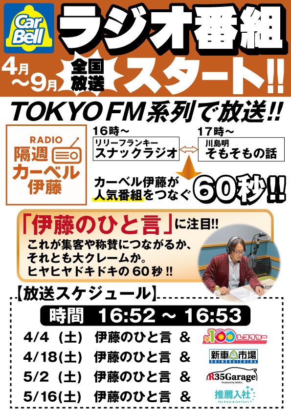 R35Garageを経営している株式会社カーベルの代表 カーベル伊藤のラジオ番組が本日からスタート!!